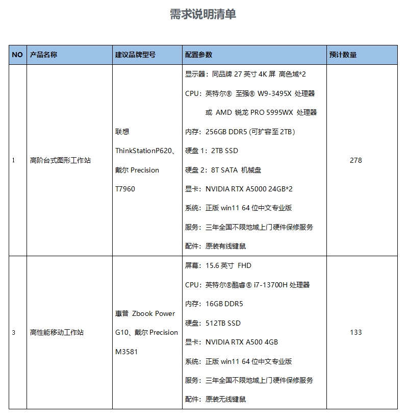 1.1采购内容:本项目共计1个包,拟选1家可定制产品且性价比较高的供应商,为我司提供标的货物及服务,主要采购产品为工作站及显示器。